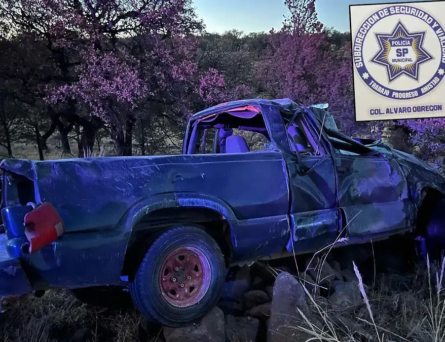 Dejan abandonada camioneta tras volcadura en carretera a Álvaro Obregón