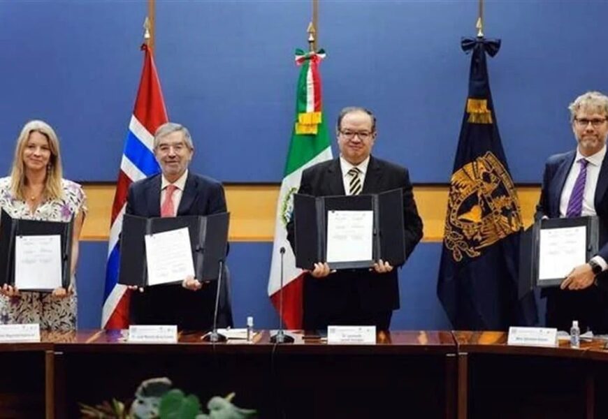 Al evento también asistió la embajadora de Noruega en México, Rangnhild Imerslund, quien subrayó que ambos países comparten una visión cuando se trata de construir puentes y promover el diálogo, alianza que se consolida con la firma del acuerdo.