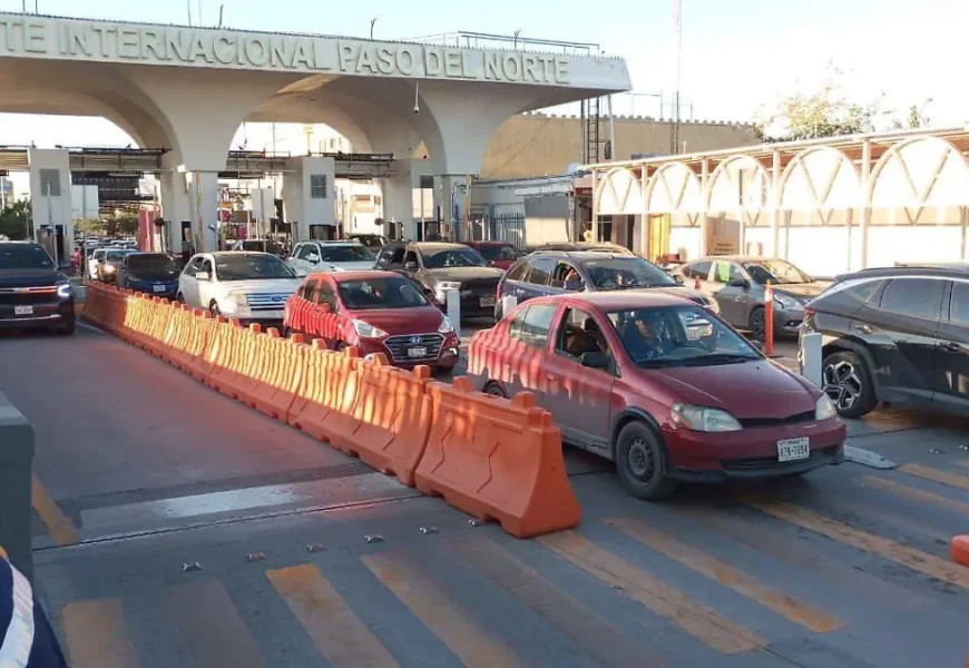 El puente Paso del Norte, ubicado en el corazón de esta frontera, presenta dos filas abiertas con tiempo de espera de 60 a 65 minutos por línea convencional, de 55 a 60 minutos por la línea express y demora de hasta 10 minutos en la fila peatonal.