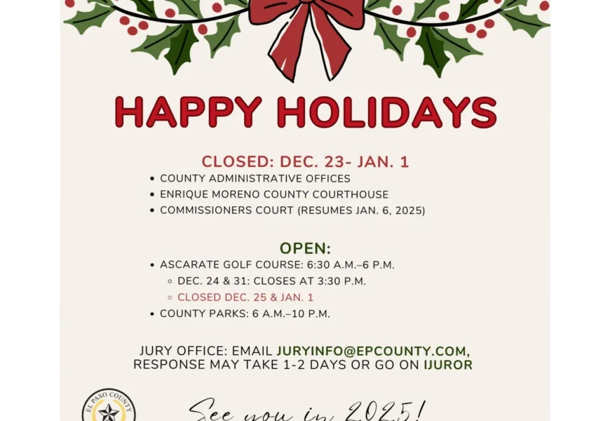 A su vez, se informó que el Tribunal de Comisionados del Condado de El Paso celebrará su última sesión ordinaria para 2024 el 16 de diciembre y su última sesión extraordinaria será el jueves 19 de diciembre.