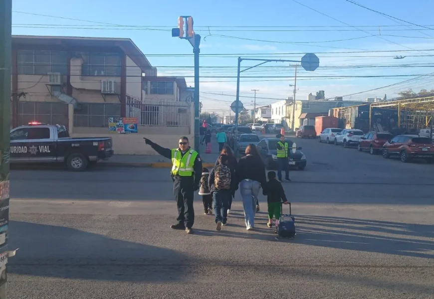 Mediante las labores de vigilancia y orientación a las familias juarenses que este lunes retornaron a las actividades presenciales en las instituciones educativas de nivel básico.